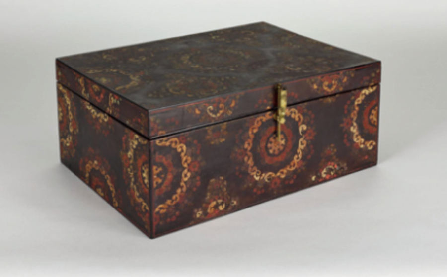 密陀绘,名词源于波斯语,是一种将一氧化铅融入漆或植物的彩绘技艺,东汉时传入中国,三国和隋唐时较为流行。正仓院的密陀绘盒子就使用了密陀绘工艺,颜色更加发散,线条流畅生动,仿佛油画一般。